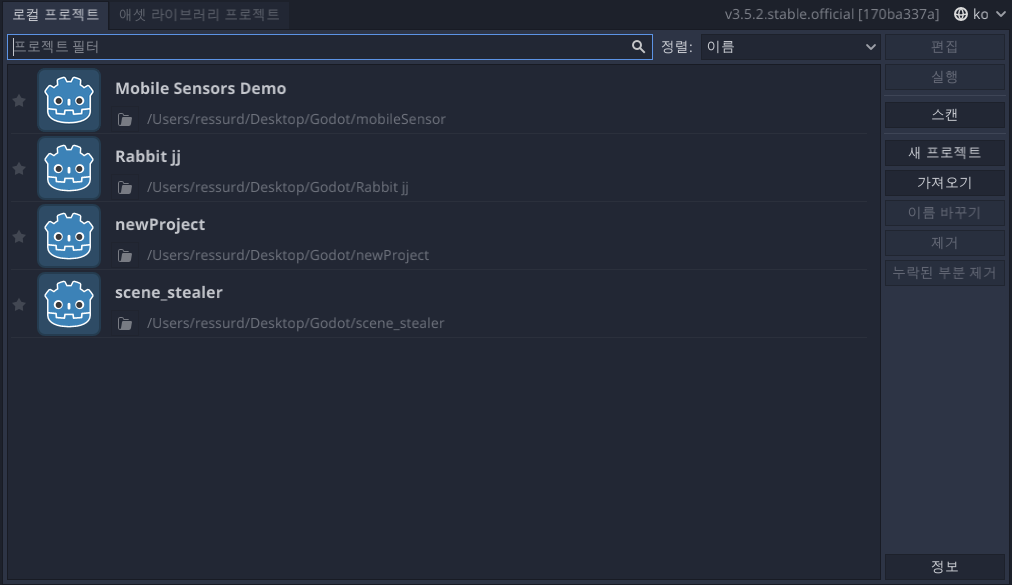 포터블 형태라 다운받으면 zip 파일이 있을것이며, zip을 풀고 godot을 실행시키면된다.