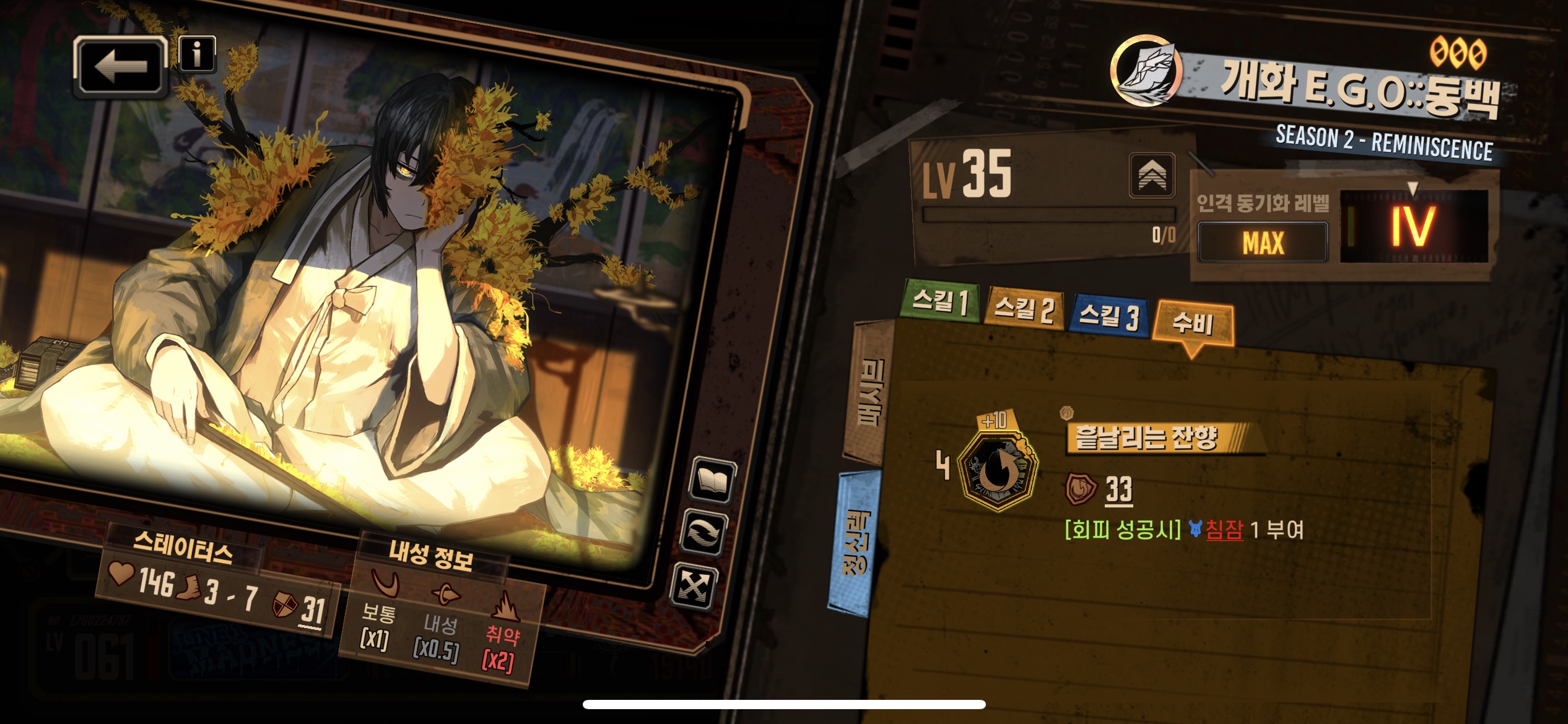 수비스킬 : 나태 속성 추가