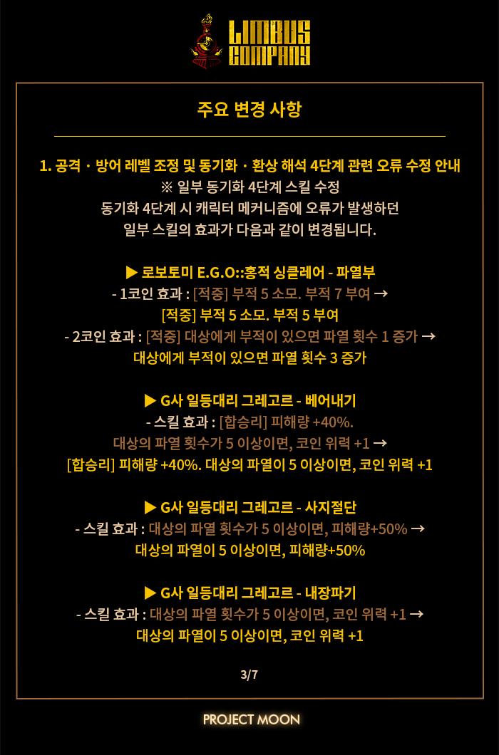 5. 공격 / 방어 버그가 있던 캐릭터, 에고들 수정