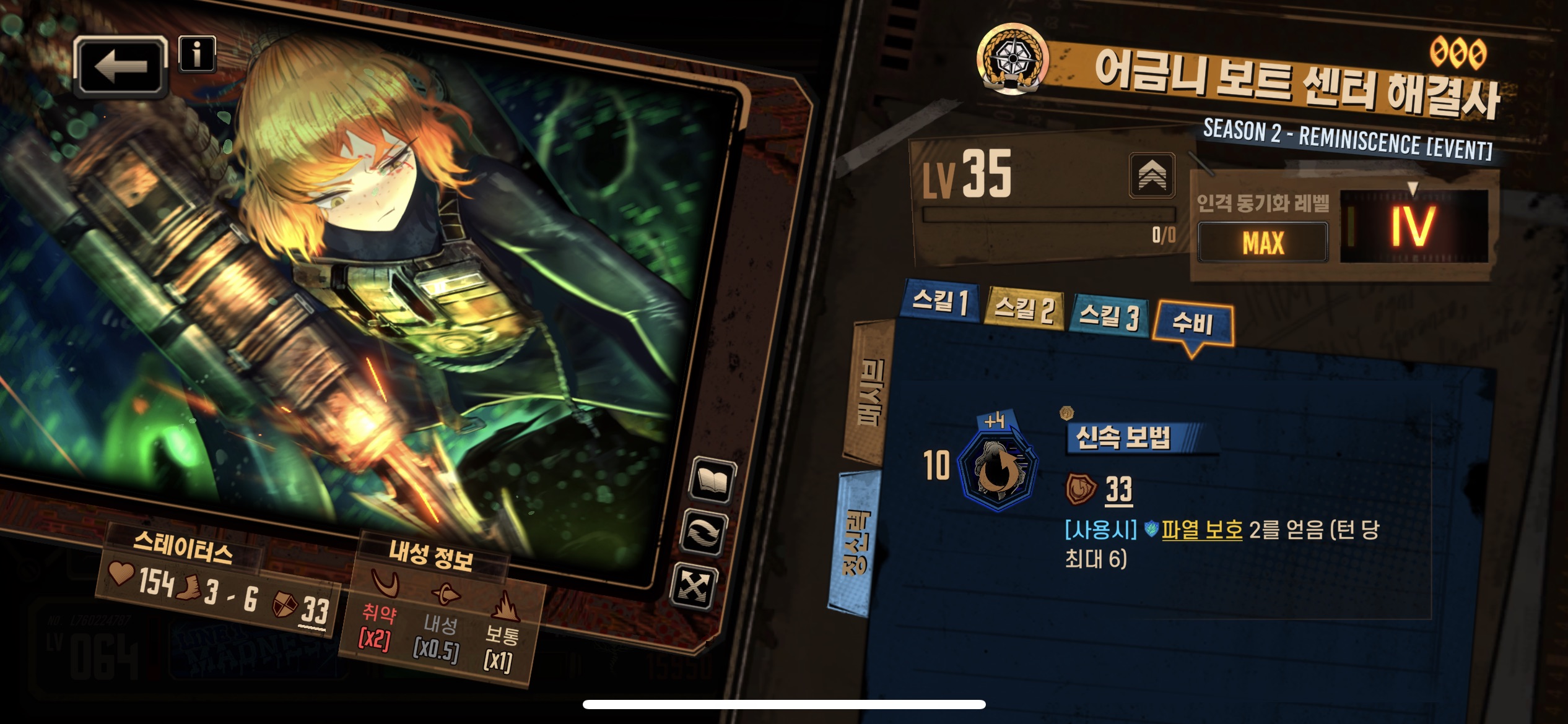 2스킬 : 2타에 적중시 방어레벨 감소 3부여 -> 4부여