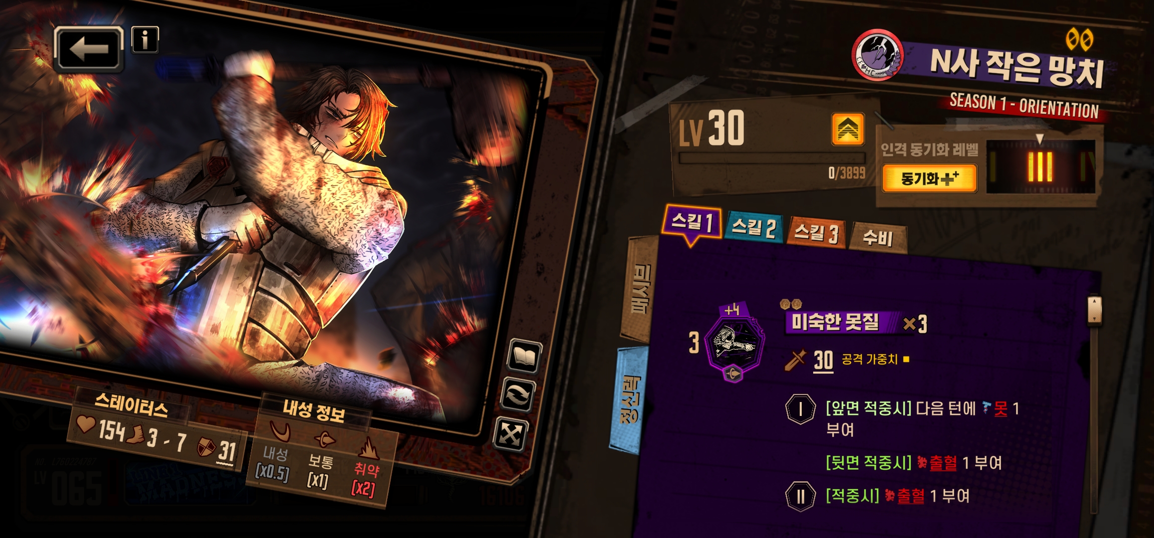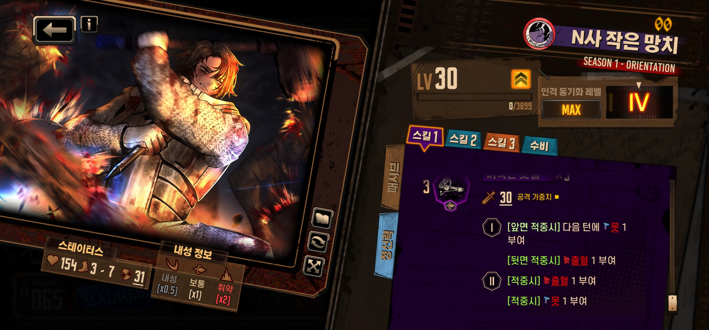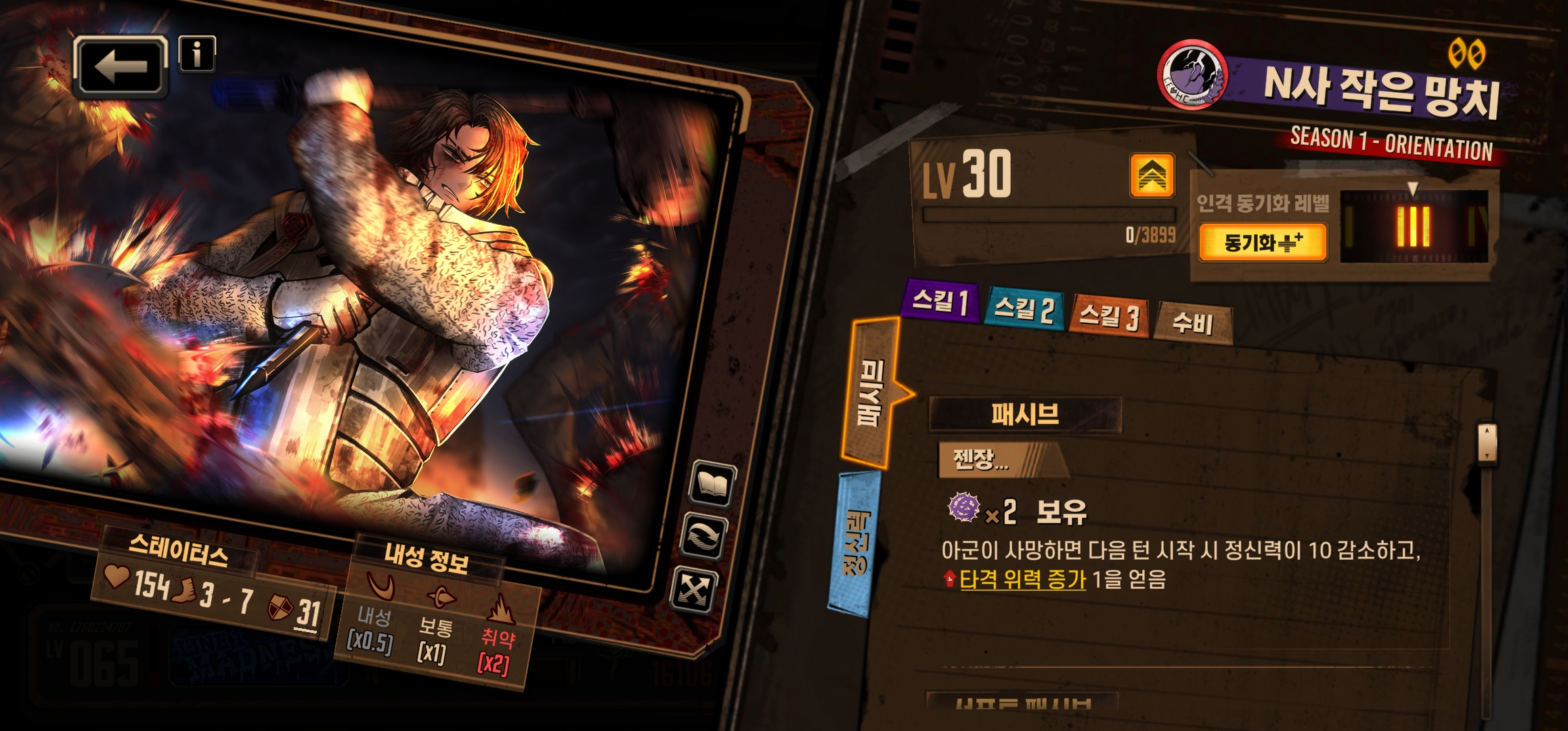 패시브 : N사 광신도 파티에 자신포함 4명일때 최종 위력 +1