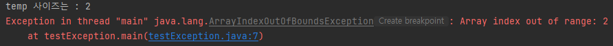 없는 값이라며 ArrayIndexOutOfBoundsException 에러를 발생시킨다.