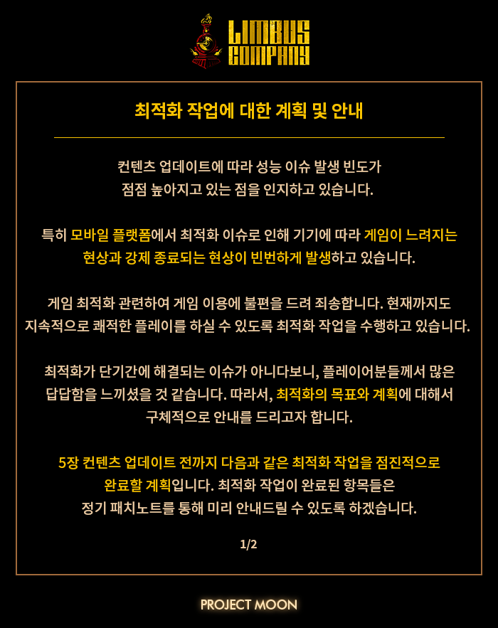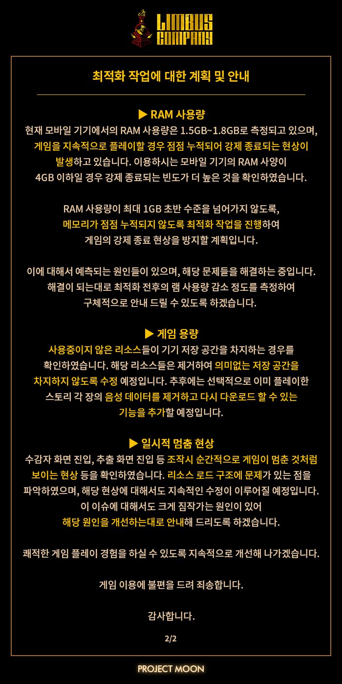 [Limbus Company] 림버스 컴퍼니 - 최적화 작업에 대한 계획 및 안내