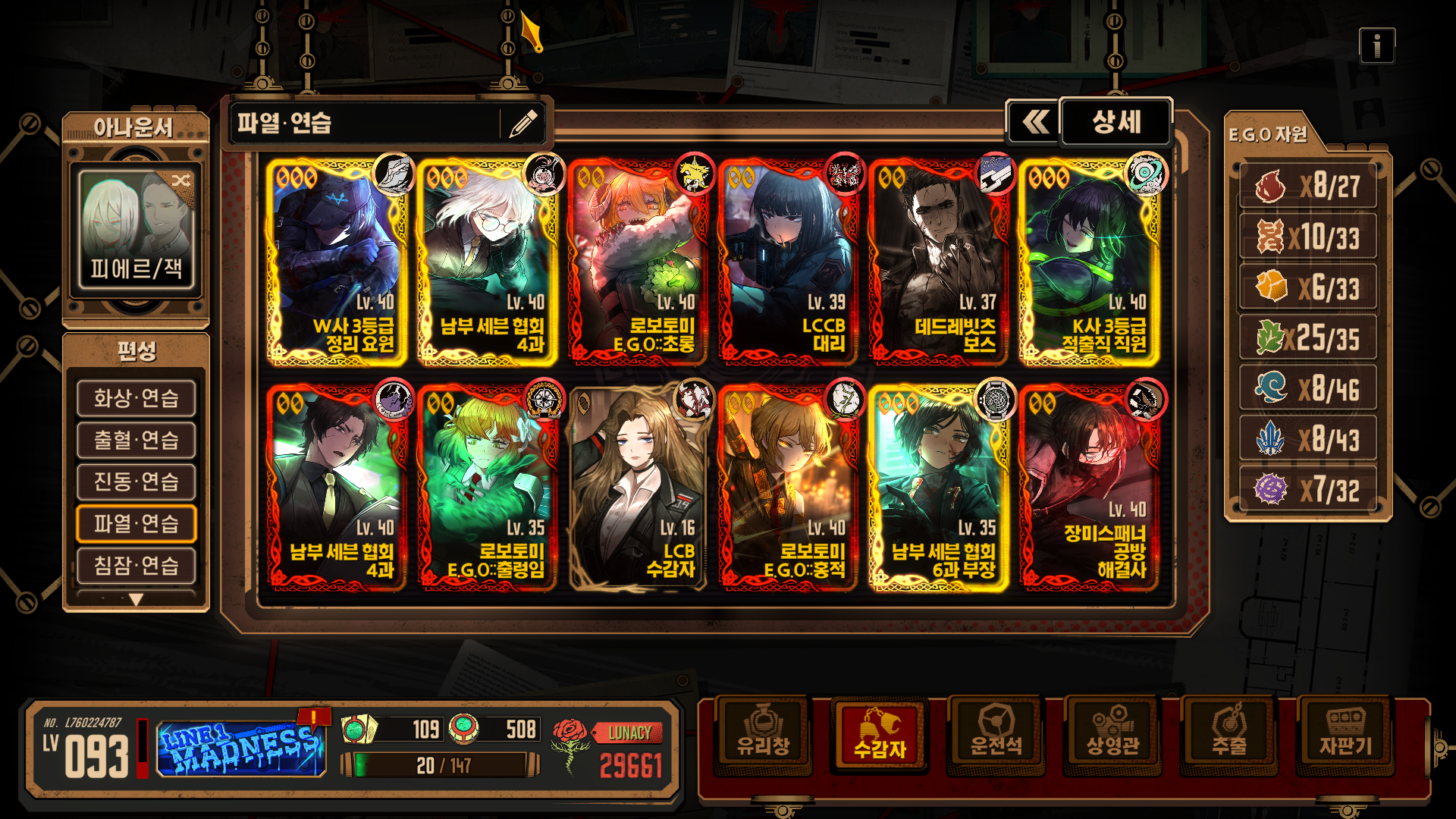 [Limbus Company] 림버스 컴퍼니 - 침잠덱(20240423)