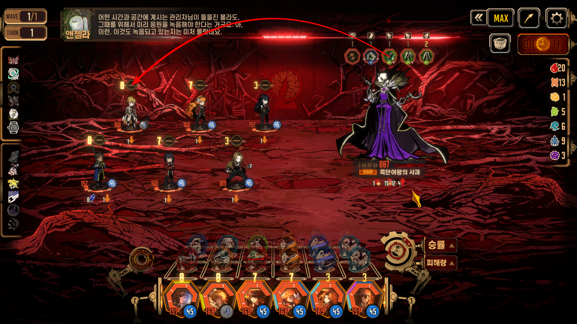 뭐 이런식으로 딜이 들어가서 1턴만에 끝난다..