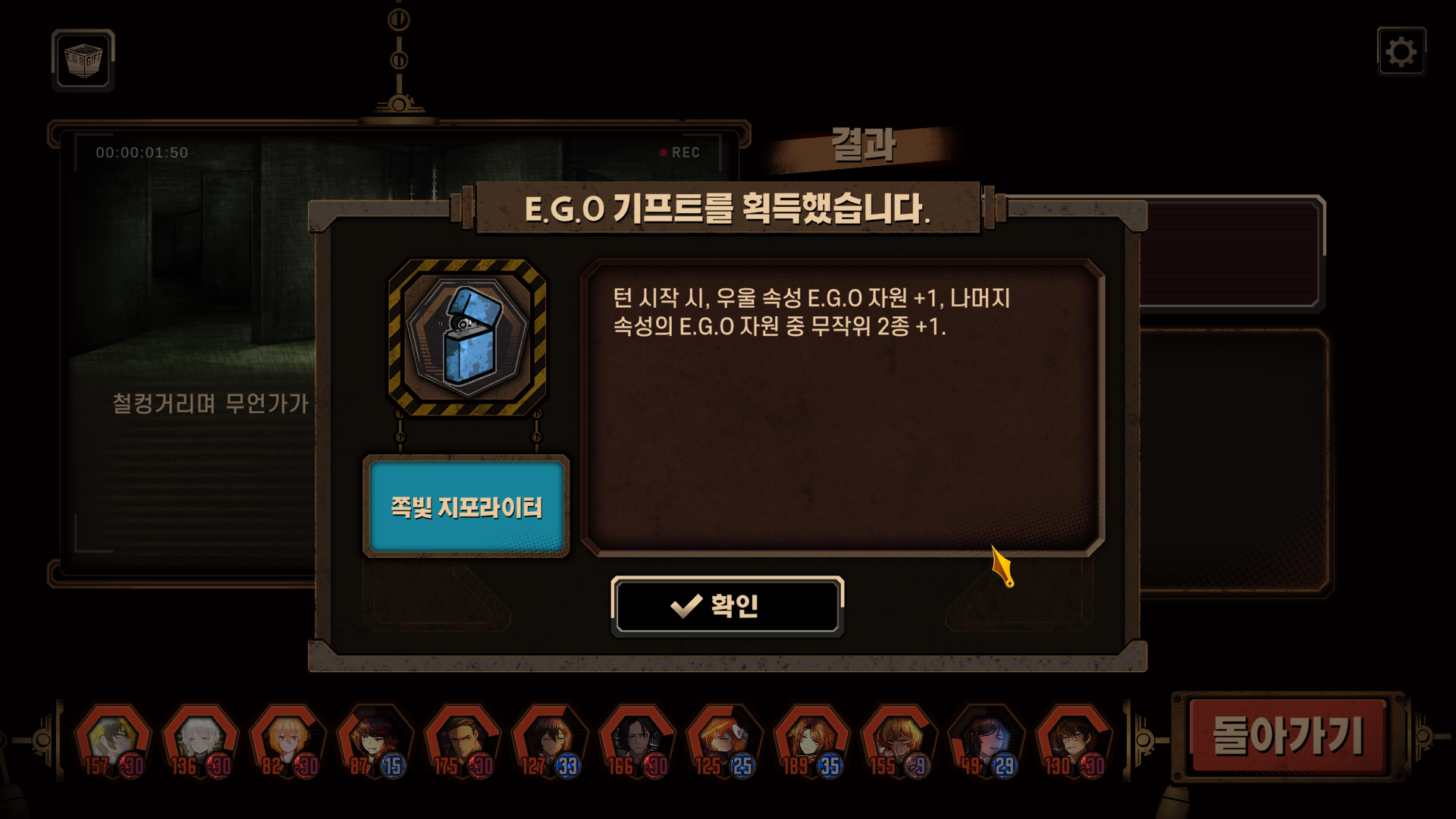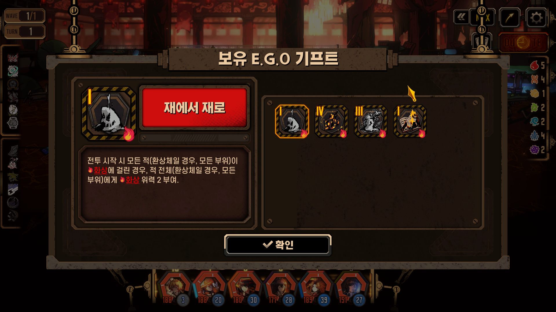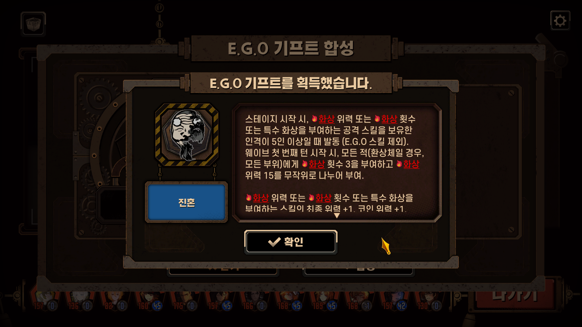 체력회복계열 기프트 1개 or 에고자원수급 기프트 1개 or 화상 기프트 1개를 선택해주자