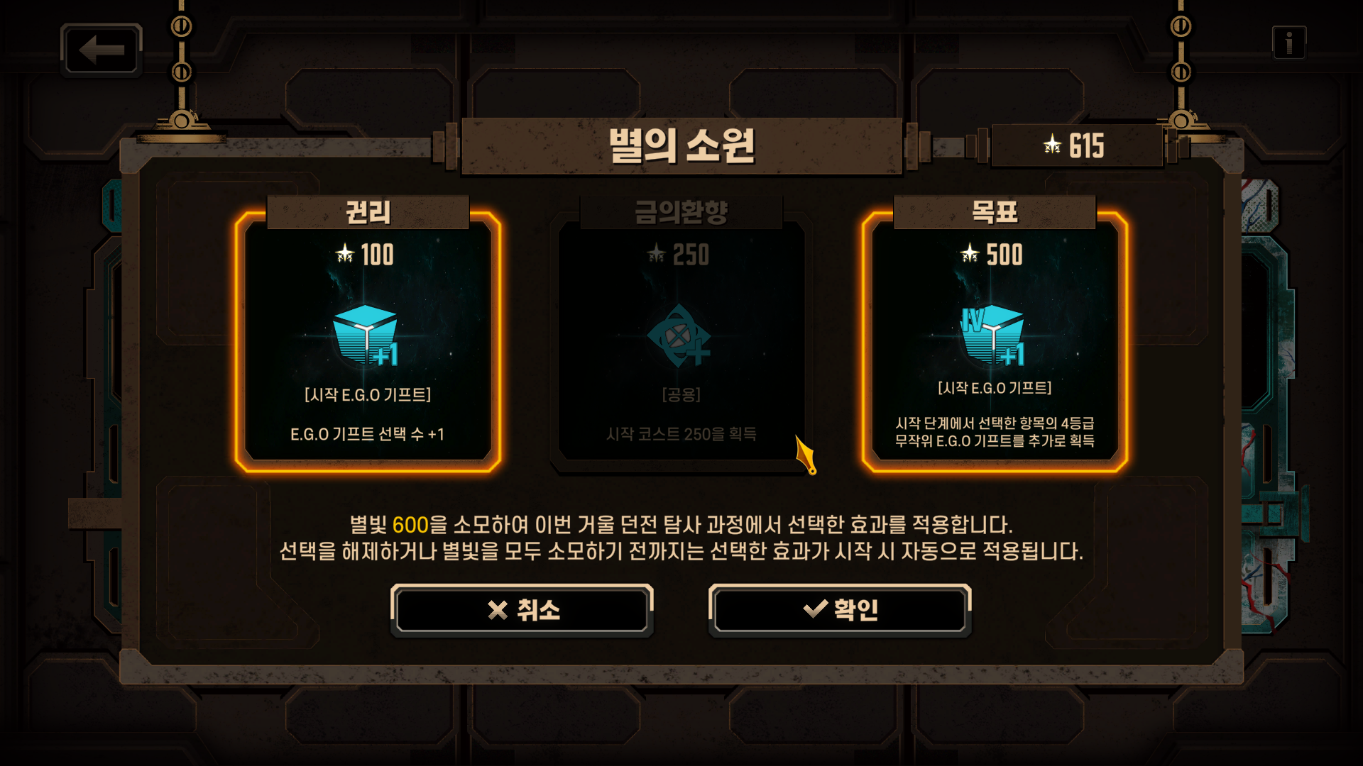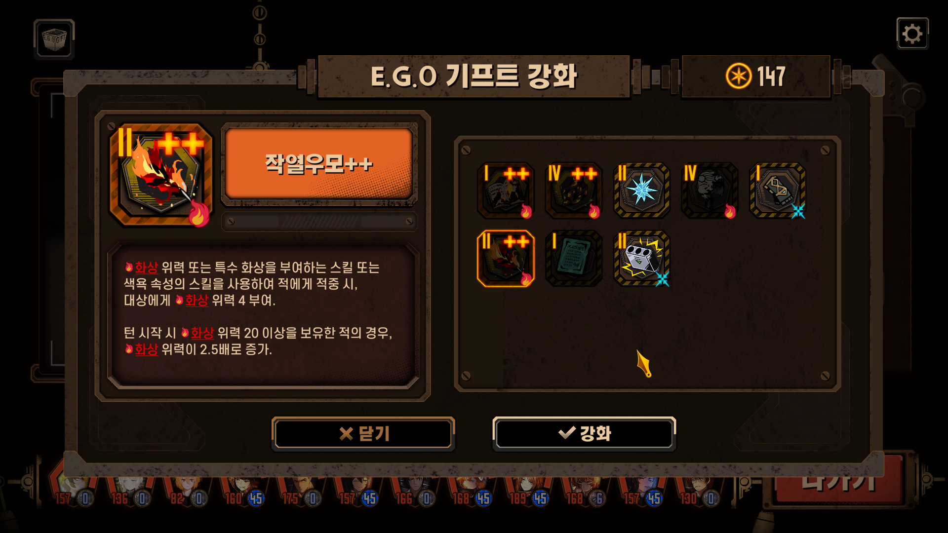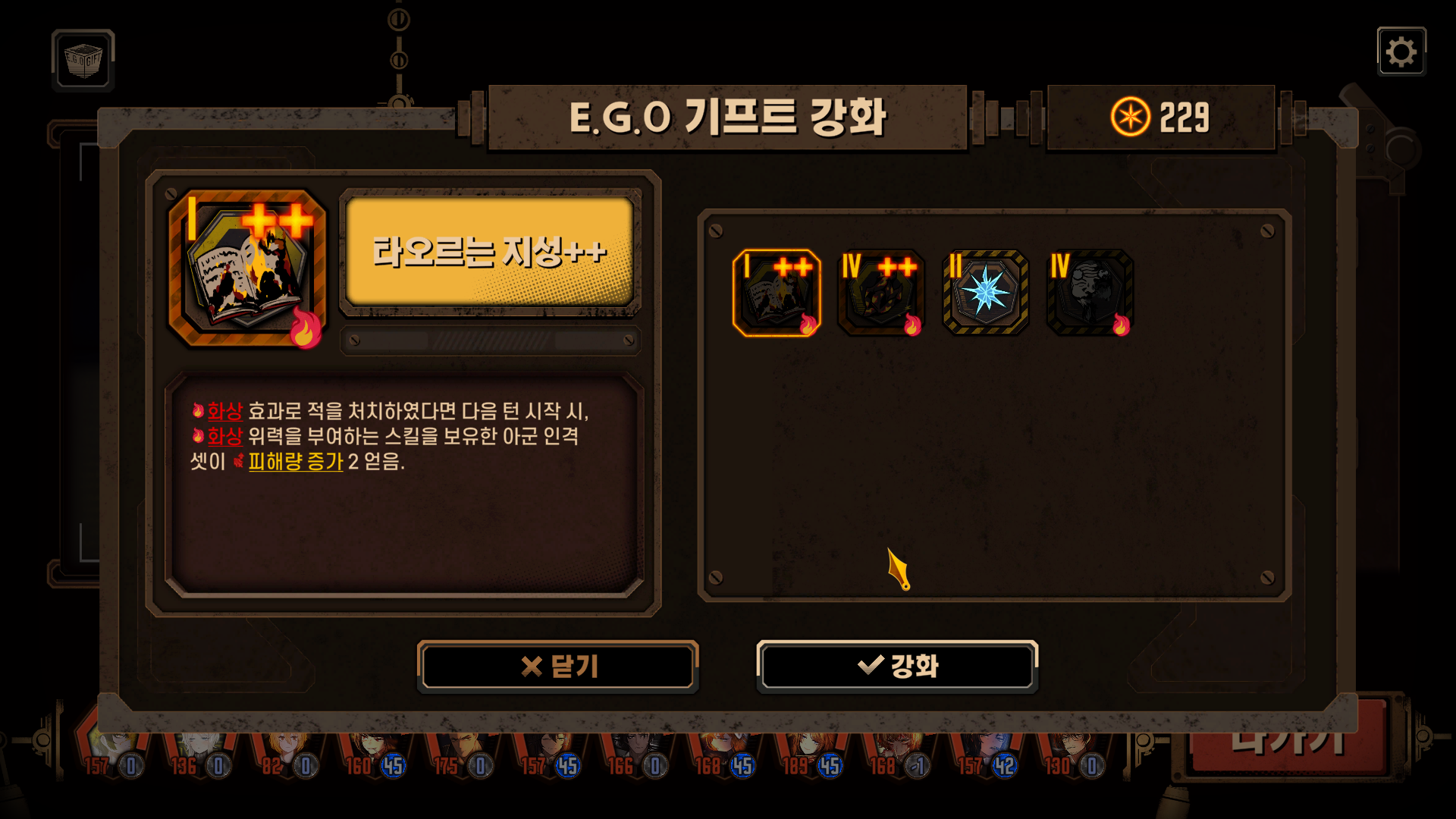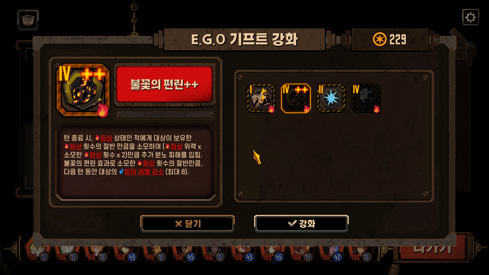 체력회복계열 기프트 1개 or 에고자원수급 기프트 1개 or 화상 기프트 1개를 선택해주자