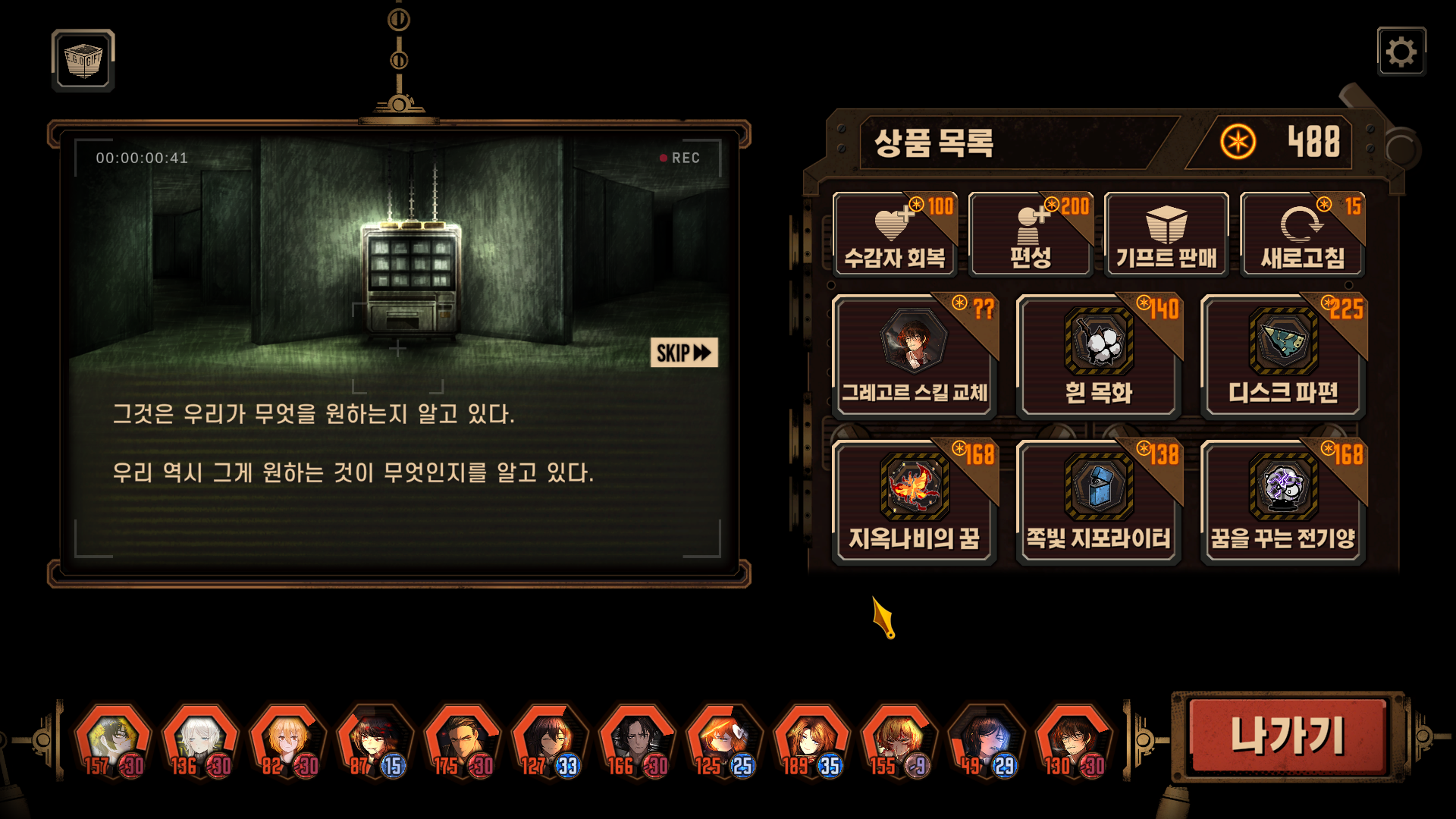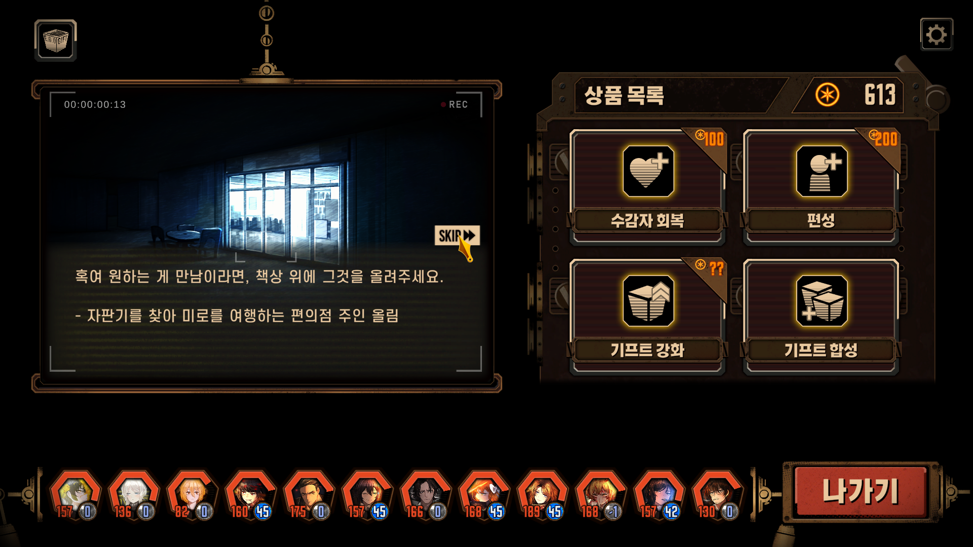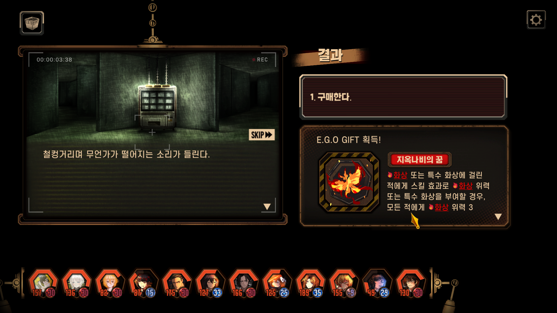아마 이렇게 된다면 이제 다음 자판기에서는 체력회복기프트 or 에고자원수급 기프트 둘중하나를 골라야한다.