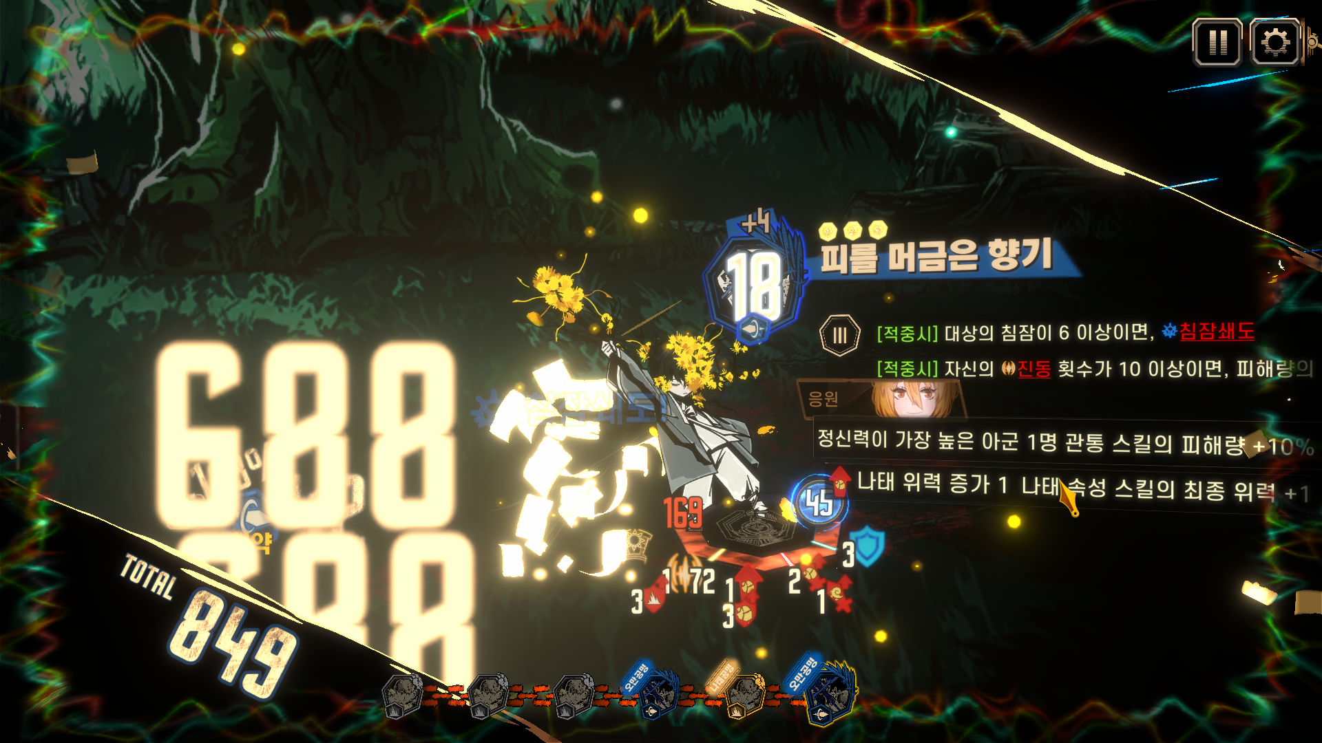 역사의 층 사서가 공격 스킬 1회 사용으로 동시에 환상체 일정 수 이상 처치