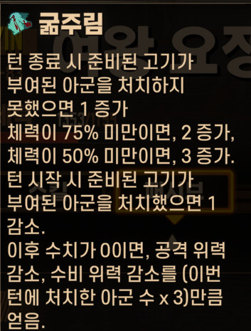 준비된 고기가 부여된 아군이 흐트러짐이면 처치