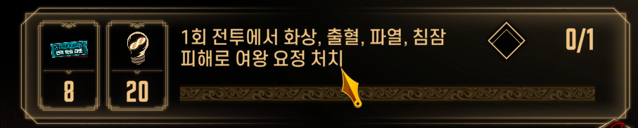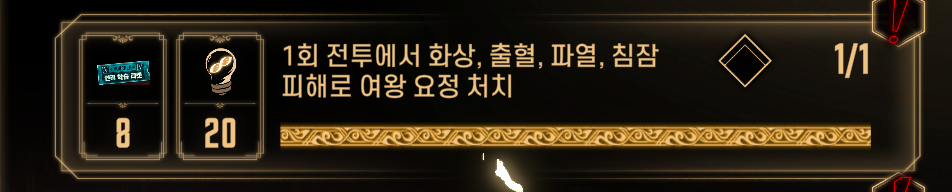 1회 전투에서 화상, 출혈, 파열, 침잠 피해로 여왕 요정 처치