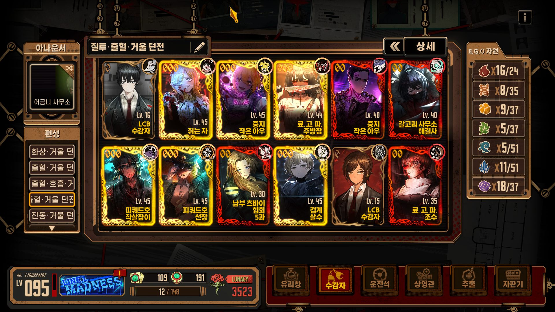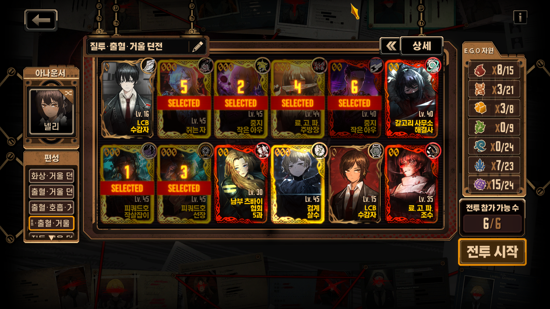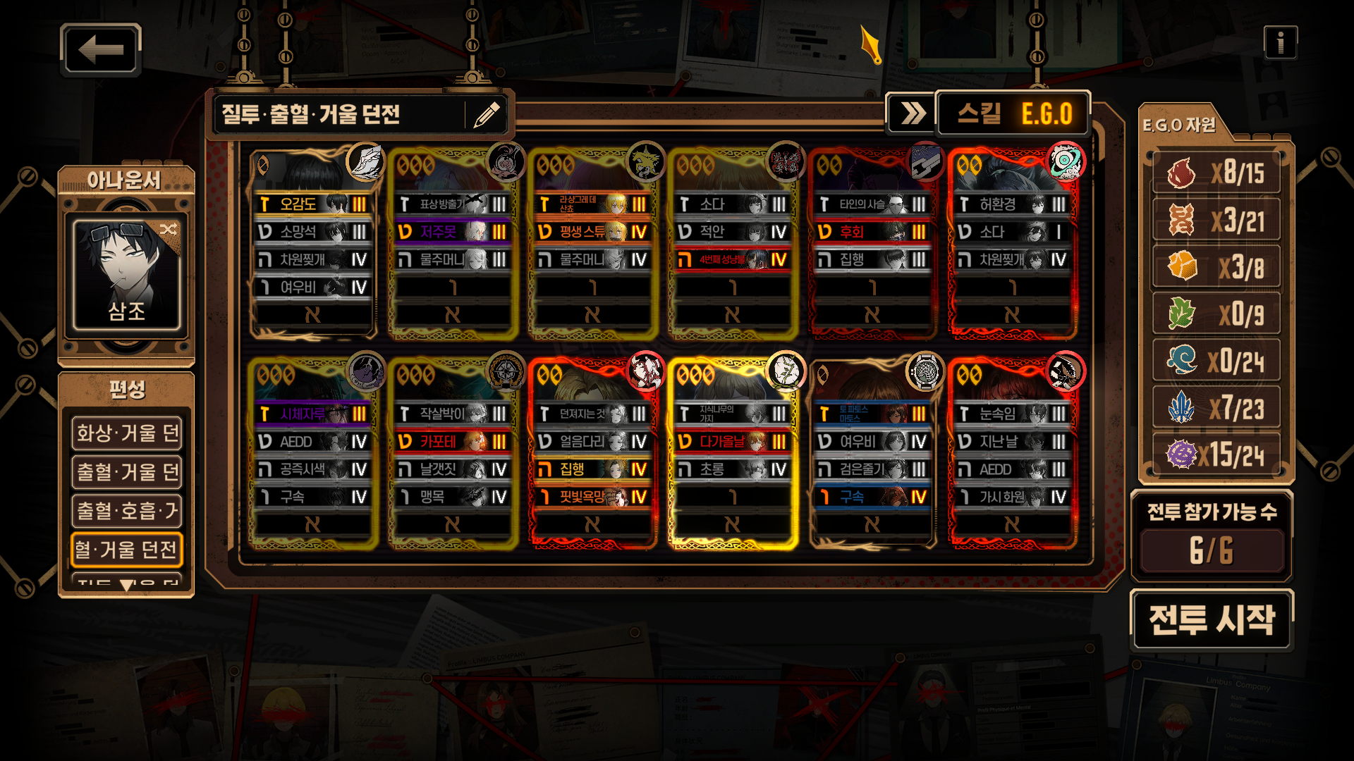 [Limbus Company] 림버스 컴퍼니 - 폭거던용 질투출혈덱(240506)