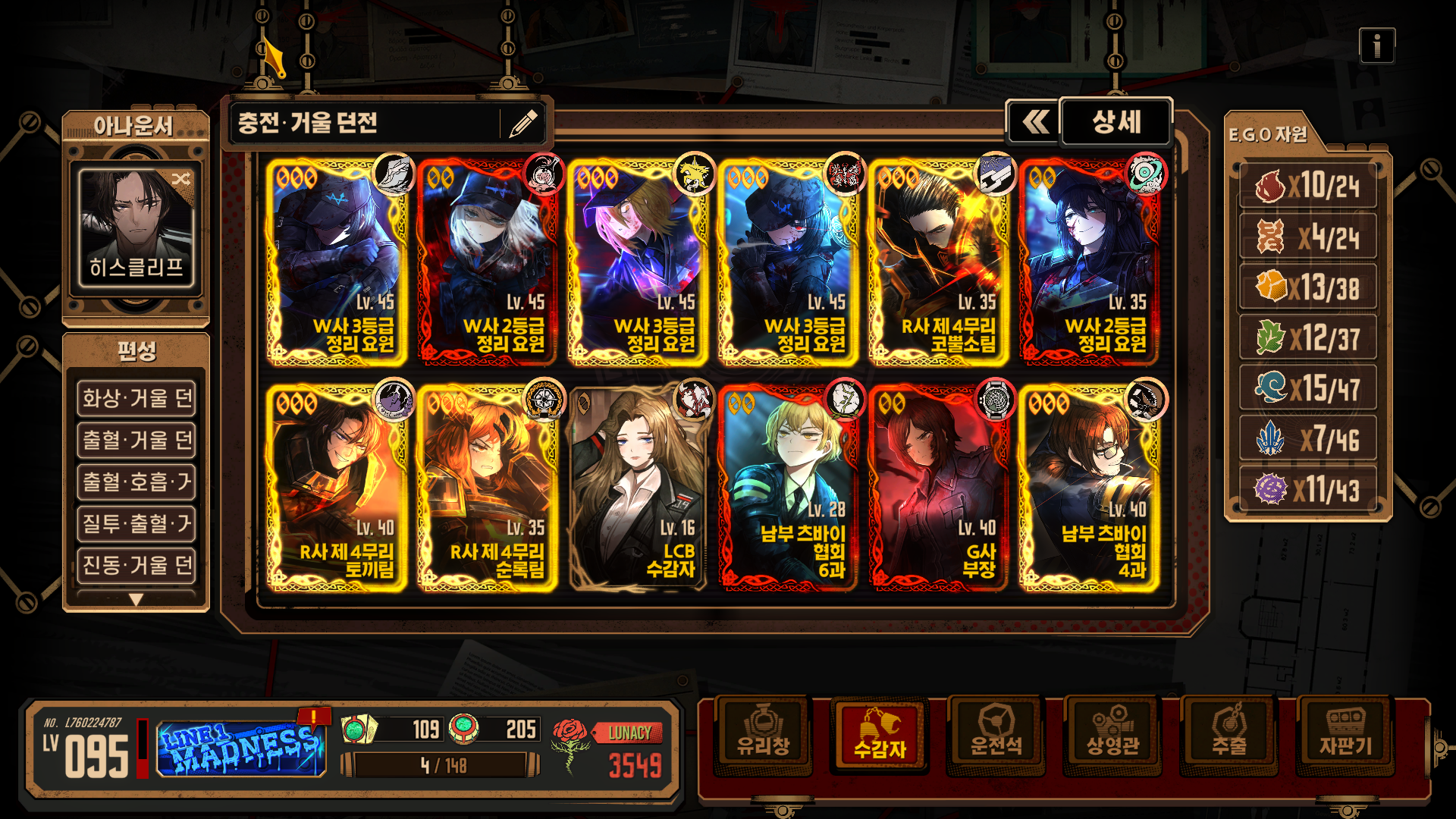 [Limbus Company] 림버스 컴퍼니 - 폭거던용 덱 여러개 소개(240525) / 화상덱 출혈덱 호흡덱 호흡출혈덱 진동덱 파열덱 침잠덱
