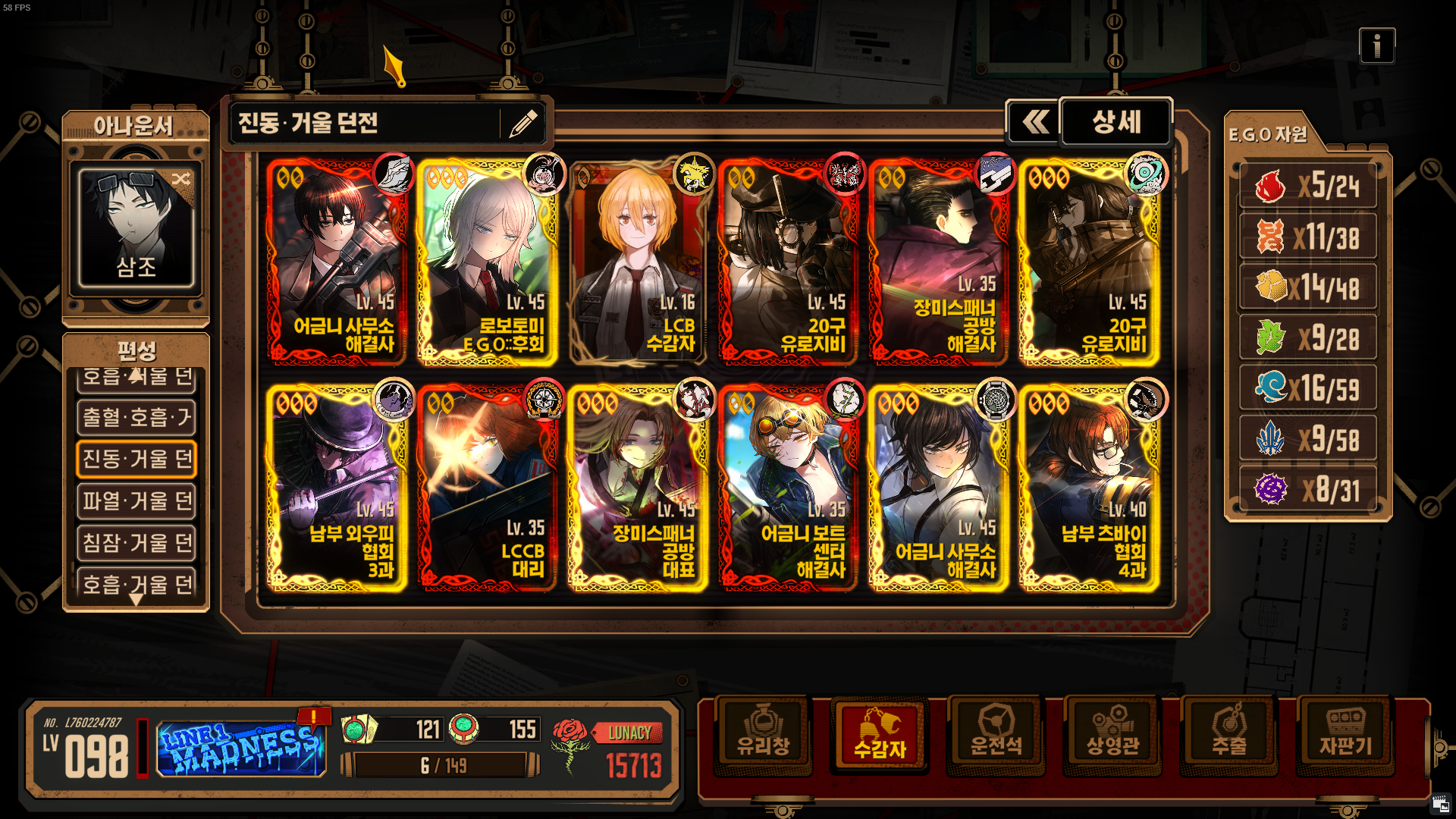 [Limbus Company] 림버스 컴퍼니 - 폭거던용 덱 여러개 소개(240525) / 화상덱 출혈덱 호흡덱 호흡출혈덱 진동덱 파열덱 침잠덱