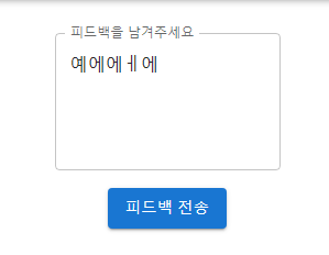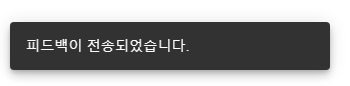 피드백 전송 버튼을 누르게 되면 피드백이 전송되었습니다. 라고 하단에 스낵바가 나오게된다.
