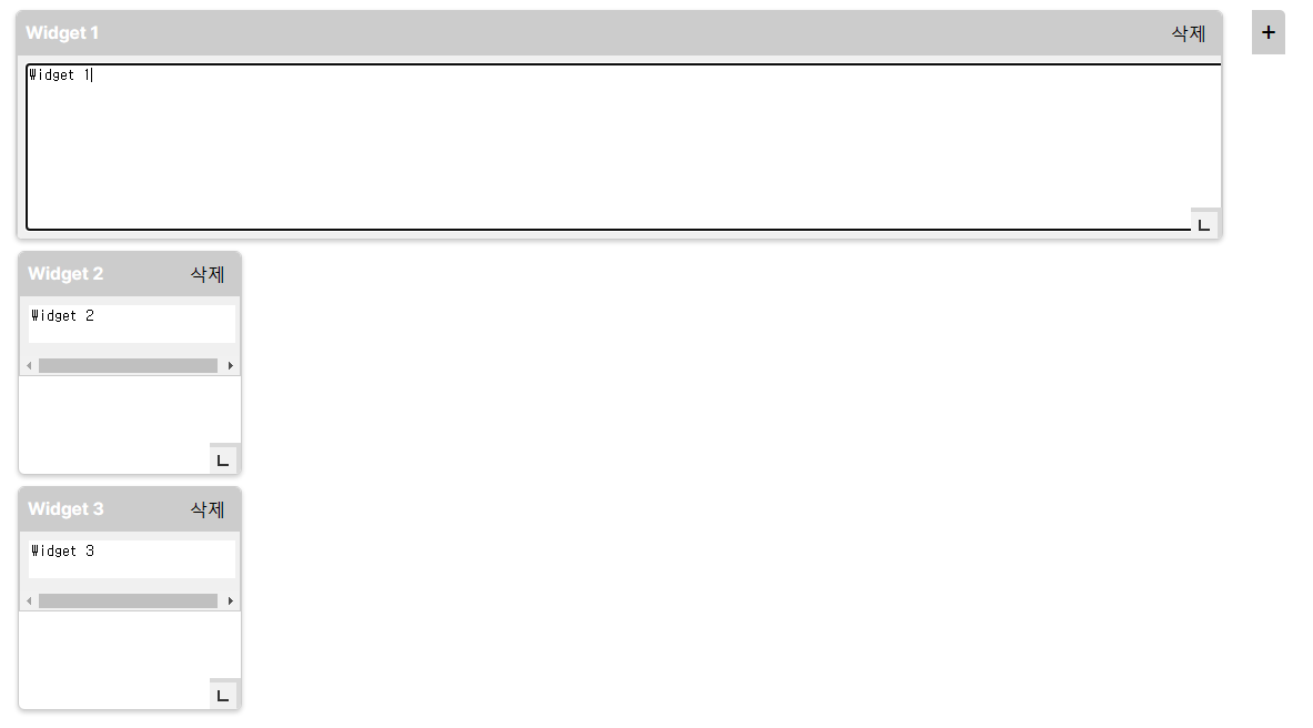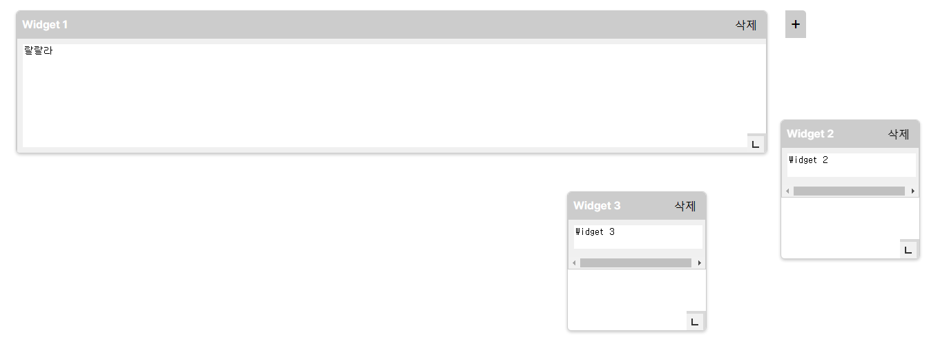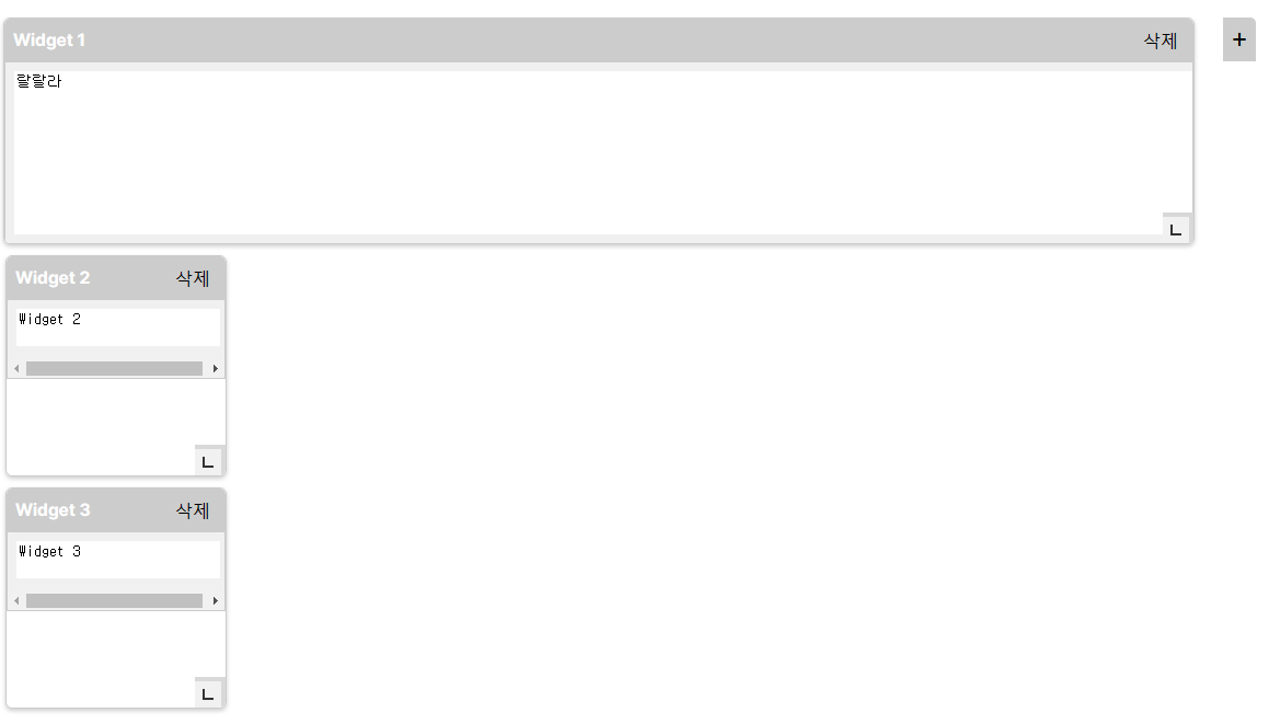 없애버린 위젯은 옆에 + 버튼을 누르면 생성이 되고, 안에 글자도 쓸 수 있다.